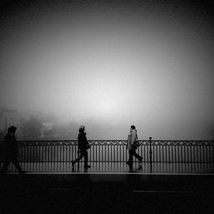 SeriesSevilla también es gris. Hace muchos años el invierno se instaló en torno a un puente que sirve de nexo entre un barrio y una ciudad. Dicen que antes de la llegada de esta estación, que se antoja eterna, todo era alegría y júbilo. Ahora la niebla, espesa y vehemente, cae lenta sobre las cabezas solitarias y apesadumbradas que cruzan el puente sin saber el porqué y para qué. Un trabajo que visiona una Sevilla "desfigurada" por el frío y el gris del invierno.